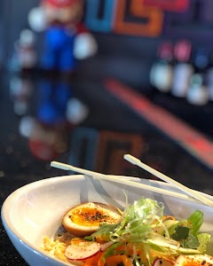The business offers a great retro vibe with 80s memorabilia and friendly staff. The food, including dishes like pretzels, ramen, and burgers, receives positive feedback. Arcade games provide entertainment but can be costly and sometimes malfunction. Clean facilities and a comfortable atmosphere are additional positives, although the men's restroom can be a bottleneck during peak times.